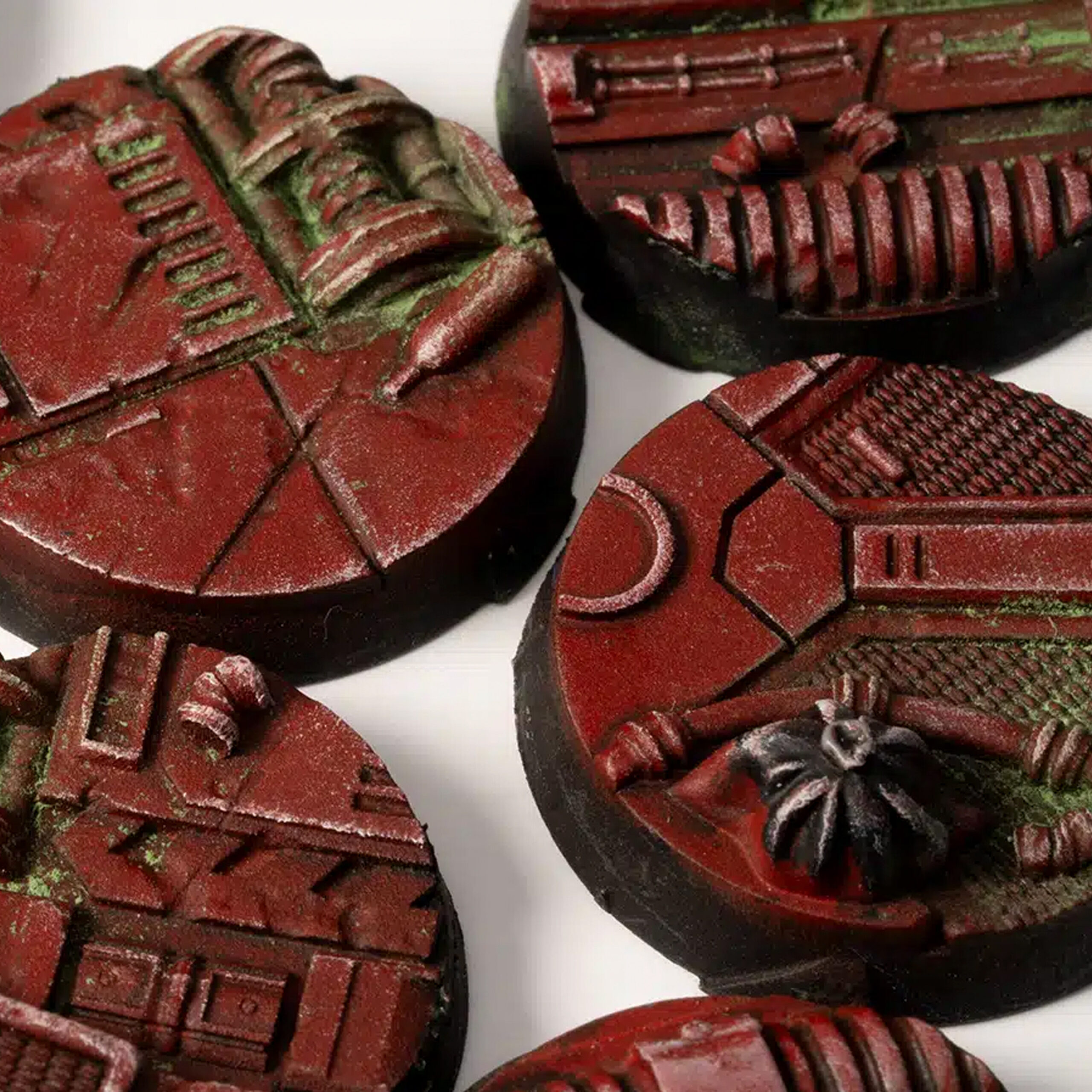 Textures variety & hand painted: Each base is carefully 3D-printed, painted and if that is the case, textured flocked and tufted by talented artists. The handcrafted detailing and painting ensures that no two bases are alike, adding a touch of exclusivity to your models.