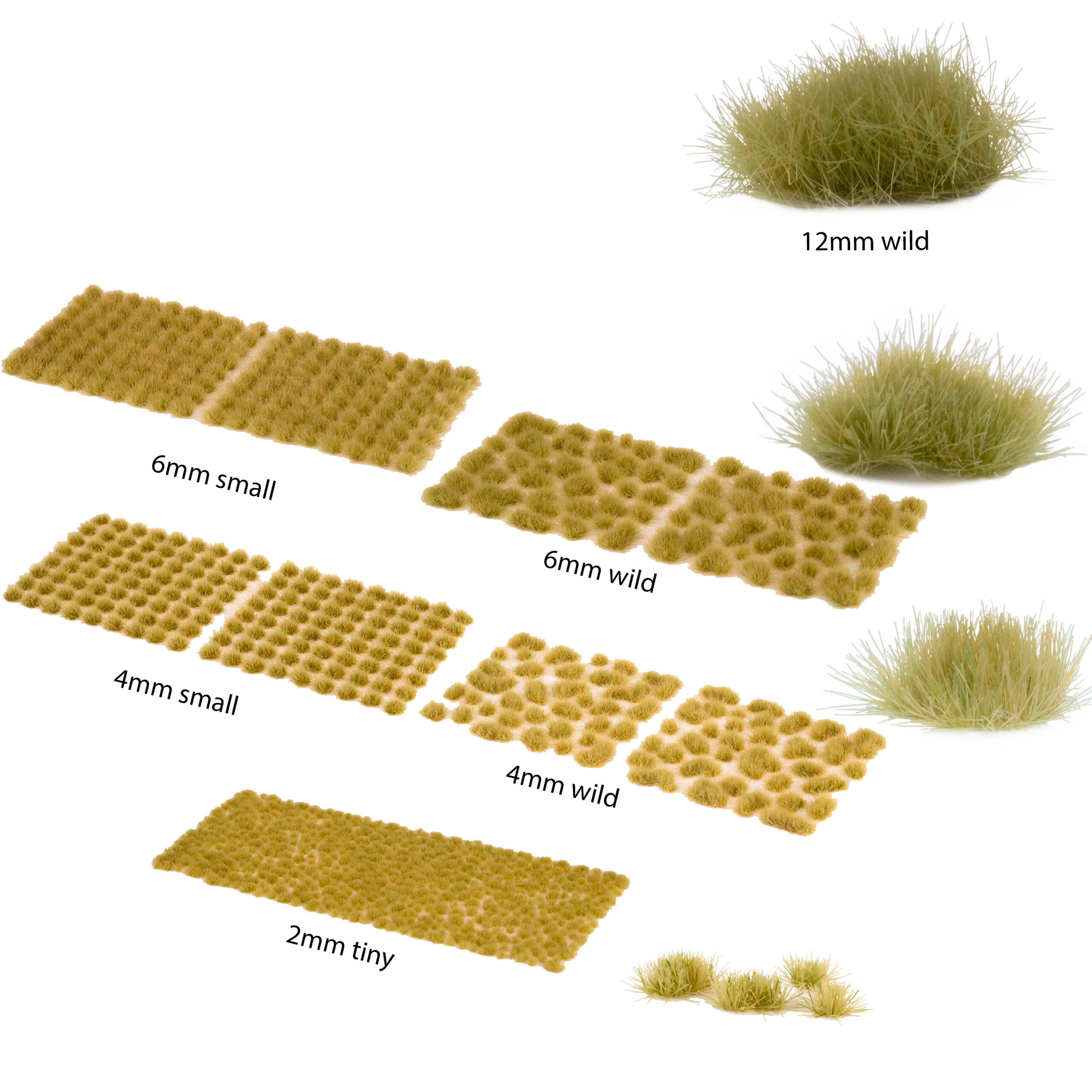 Light coloured tufts with a blend of light green and beige. Best used to recreate small young sprouting herbs and small mosses living in a wide range of habitats. Also perfect to recreate many types of prairies, pastures and meadows.